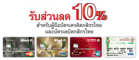 รับส่วนลด 10% สำหรับผู้ถือบัตรเครดิตกสิกรไทย และบัตรเดบิตกสิกรไทย