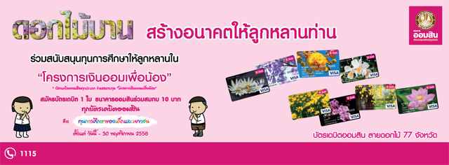 ดอกไม้บาน สร้างอนาคตให้ลูกหลานท่าน... ออมสิน ร่วมสร้างอนาคตเด็กไทย จัดโครงการ "เงินออมเพื่อน้อง" ชวนสมัครบัตรเดบิต ให้ทุนการศึกษารวมกว่า 35 ล้านบาท