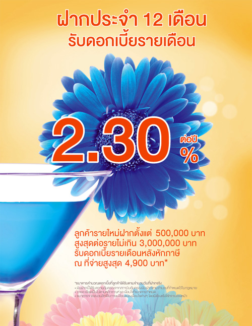 บัญชีเงินฝากประจำ 12 เดือน รับดอกเบี้ยรายเดือน สูงสุด 2.30% ต่อปี จาก ธ.ไทยเครดิต