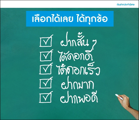 เงื่อนไขสำคัญ - การฝากเงินแต่ละครั้งไม่ต่ำกว่า 50,000 บาท และห้ามถอนเงินฝากบางส่วน