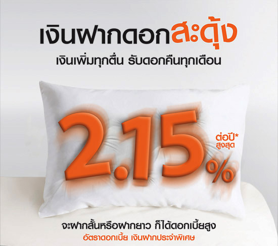 - จำนวนเงินฝากตั้งแต่ 25,000,000 บาท อัตราดอกเบี้ย 2.15% ต่อปี