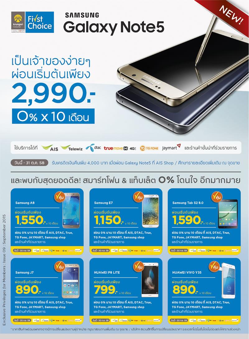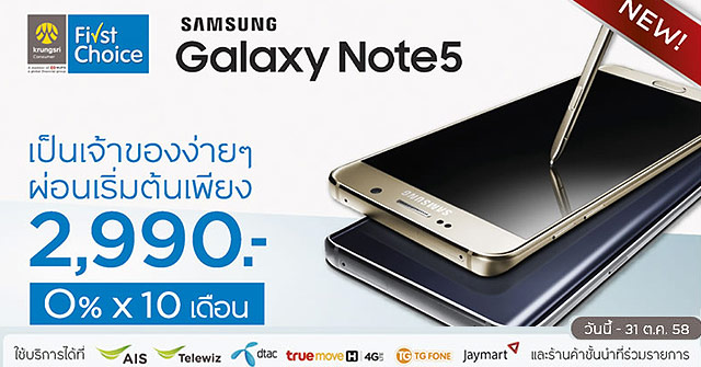 เป็นเจ้าของ Galaxy Note5 ง่ายๆ ผ่อน 0% 10 เดือน กับบัตรกรุงศรีเฟิร์สช้อยส์