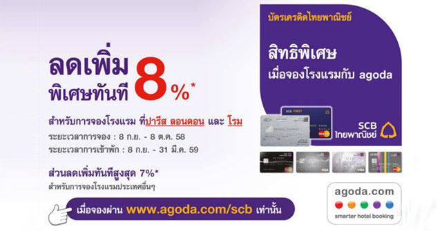 บัตรฯ SCB ลดเพิ่มสูงสุด 8% เมื่อจองโรงแรมผ่าน Agoda