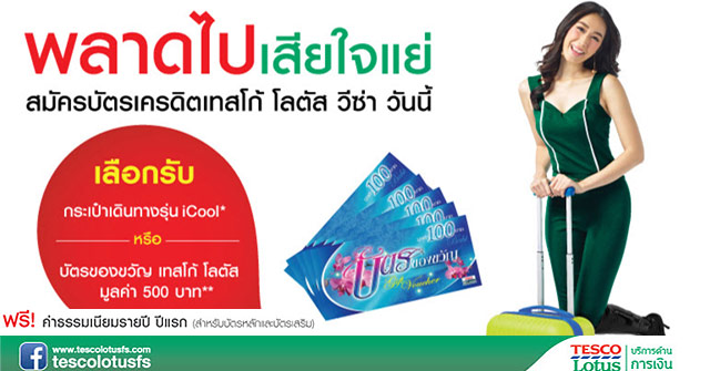 สมัครบัตรเครดิตเทสโก้ โลตัส วีซ่า วันนี้ เลือกรับกระเป๋าเดินทาง iCool หรือบัตรของวัญมูลค่า 500 บาท