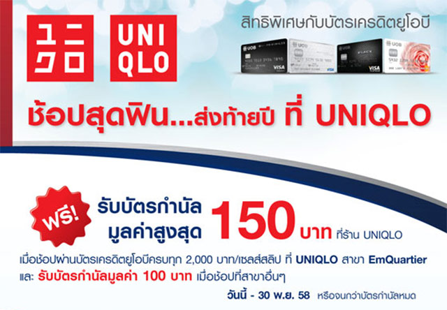 สิทธิพิเศษกับบัตรเครดิตยูโอบี ช้อปสุดฟิน ... ส่งท้ายปี ที่ UNIQLO วันนี้ - 30 พ.ย. 58 (หรือจนกว่าของจะหมด)