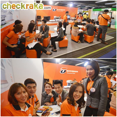 ภาพบรรยากาศภายในบูธ ธ.ธนชาต และพนักงานที่ยิ้มแย้ม คอยต้อนรับผู้เข้ามาเยี่ยมชมงานค่ะ