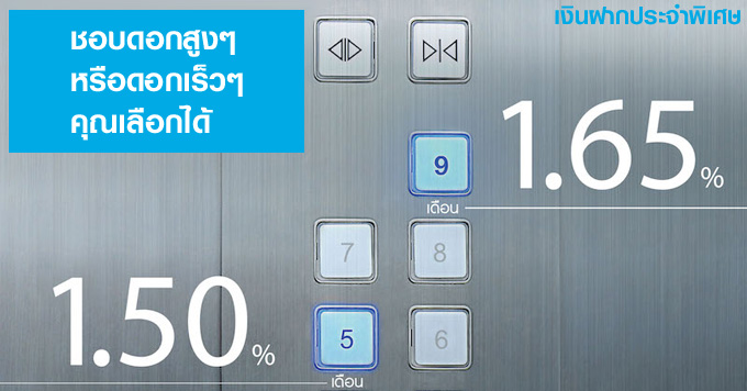"ชอบดอกสูง หรือดอกเร็ว คุณเลือกได้" กับบัญชีเงินฝากประจำพิเศษ ที่เลือกฝากได้ทั้งระยะสั้นและระยะยาว (ระยะเวลาฝาก 5 เดือน และระยะเวลาฝาก 9 เดือน) สำหรับลูกค้าทุกประเภท ฝากขั้นต่ำ 50,000 บาท วันนี้ - 30 พ.ย. 2558