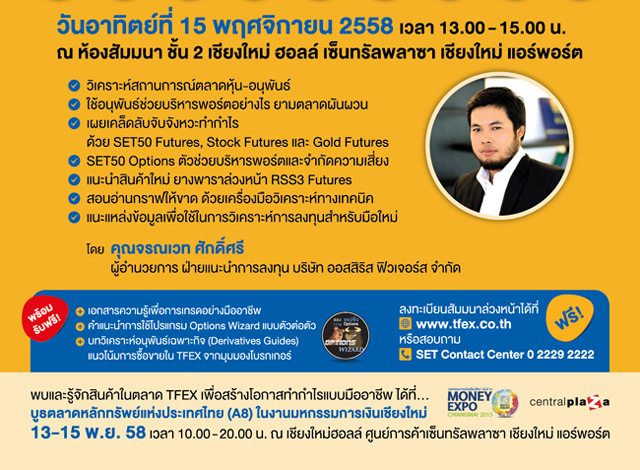 มหกรรมการเงินเชียงใหม่ ครั้งที่ 10 MONEY EXPO Chiangmai 2015 วันที่ 13-15 พ.ย. 58