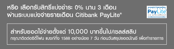 เงื่อนไขกรณีเลือกผ่อน 0% 3 เดือน - สงวนสิทธิ์เฉพาะสมาชิกบัตรเครดิตซิตี้แบงก์ที่ออกในประเทศไทยเท่านั้น