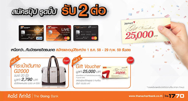 สมัครปุ๊บ รูดปั๊บ รับ 2 ต่อ กระเป๋าเดินทาง G2000 และ Gift Voucher มูลค่า 25,000 บาท กับบัตรฯ ธนชาต