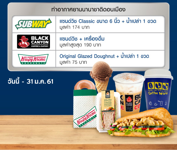 - รับแซนด์วิช + เครื่องดื่ม มูลค่าสูงสุด 190 บาท ที่ร้าน Black Canyon Coffee