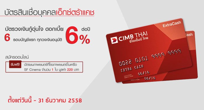 บัตรเอ็กซ์ตร้าแคช วงเงินกู้อุ่นใจ ด้วยดอกเบี้ย 6% ต่อปี จาก ธ.ซีไอเอ็มบี ไทย
