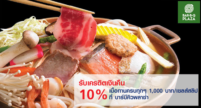 รับเครดิตเงินคืน 10% เมื่อทานครบทุกๆ 1,000 บาท ที่บาร์บีคิวพลาซ่า จากบัตรเครดิตยูโอบี