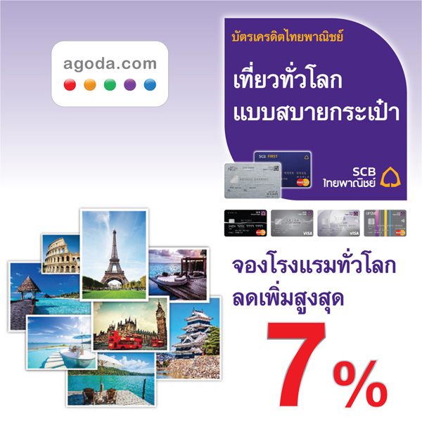 รับส่วนลดสูงสุด 7% เมื่อจองโรงแรมผ่าน agoda จากบัตรเครดิตไทยพาณิชย์