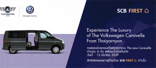 - รับแคมเปญพิเศษ "Thaiyarnyon Absolute Worry Free Package" ฟรี 5 ปี และ Samsung Galaxy S6 64GB ฟรี! เมื่อจองรถ The new Caravelle และชำระผ่านบัตรเครดิต SCB First