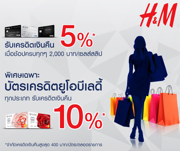 รับเครดิตเงินคืนสูงสุด 10% เมื่อช้อปครบทุกๆ 2,000 บาทขึ้นไป/เซลส์สลิป ที่ Shop H&M ทุกสาขา กับบัตรเครดิต UOB
