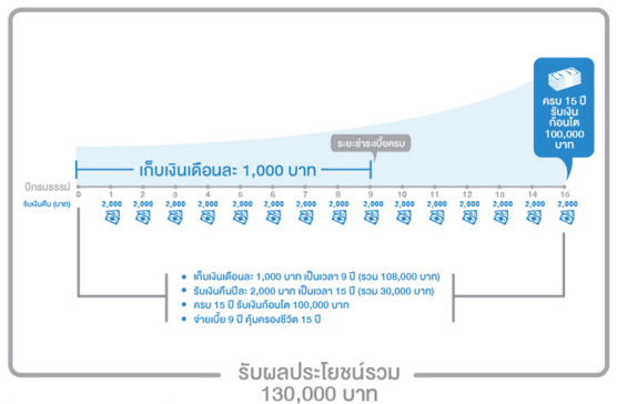 - รับเงินก้อนโตอีก 100,000 บาท ณ สิ้นปีกรมธรรม์ที่ 15