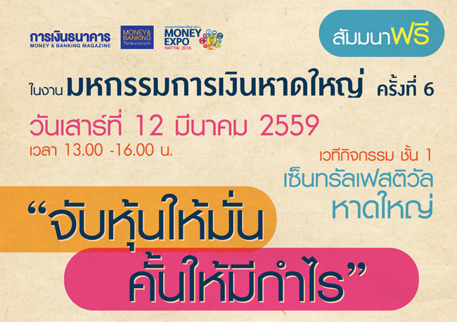 มหกรรมการเงินหาดใหญ่ ครั้งที่ 6 (Money Expo Hatyai 2016) วันที่ 11 - 13 มี.ค. 59