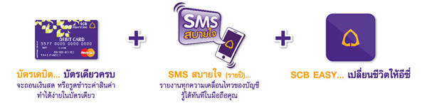 - บัตรซูเปอร์ เดบิต พลัส เหลือทั้งชุดเพียง 1,698 บาท จากปกติ 1,898 บาท - รับ! เงินคืนเมื่อสมัครและใช้งาน SCB EASY เดือนละ 100 บาท 3 เดือนแรก สูงสุด 300 บาท