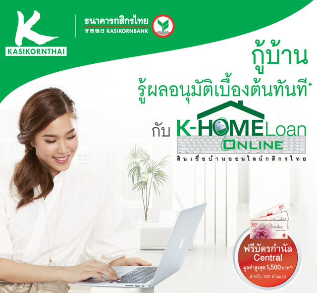 กู้บ้าน...รู้ผลอนุมัติเบื้องต้นทันที กับ K-Home Loan Online สินเชื่อบ้านออนไลน์กสิกรไทย วันนี้ - 31 มีนาคม 2559
