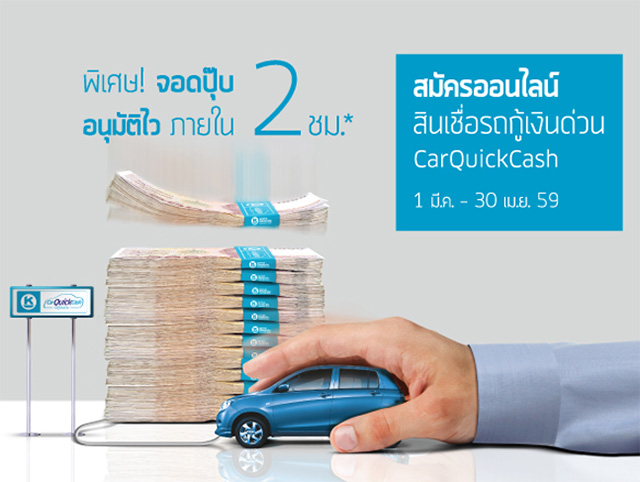 สมัครสินเชื่อออนไลน์รถกู้เงินด่วน CarQuickCash ติดต่อไวทันใจ อนุมัติภายใน 2 ชั่วโมง พร้อมรับเงินภายใน 1 วัน ให้ดอกเบี้ยขั่นต่ำเริ่มต้น 0.25% ต่อปี ฟรีค่าโอนเล่มทะเบียน วันนี้ - 30 เม.ย. 59 เท่านั้น.