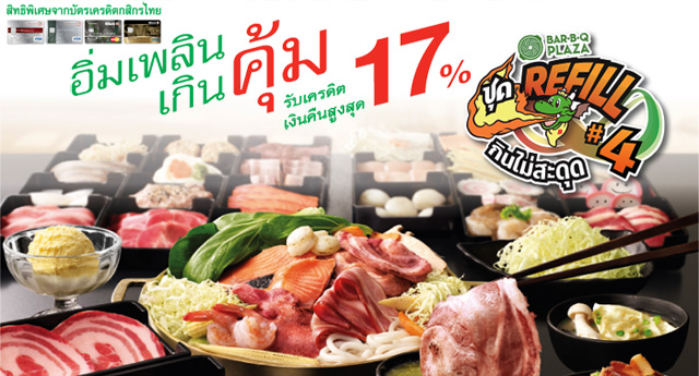 อิ่มเพลิน เกินคุ้ม รับเครดิตเงินคืนสูงสุด 17% ที่ Bar-B-Q Plaza กับบัตรเครดิตกสิกรไทย