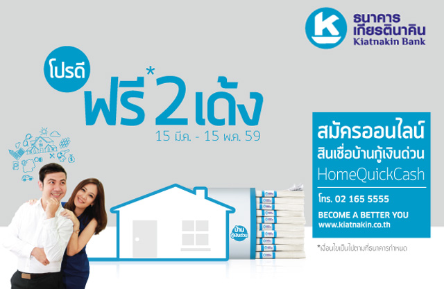สินเชื่อบ้านกู้เงินด่วน HomeQuickCash ธนาคารเกียรตินาคิน มอบโปรดี ฟรี 2 เด้ง ฟรี! ค่าธรรมเนียมประเมินราคาและค่าจดจำนอง วันนี้ - 15 พ.ค. 59
