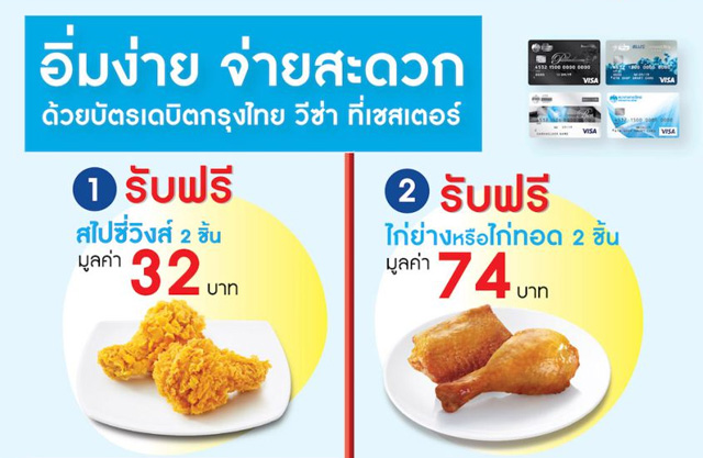 บัตรเดบิต กรุงไทย วีซ่า - รับฟรี! สไปซี่วิงส์ 2 ชิ้น มูลค่า 32 บาท