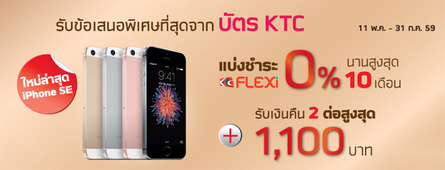 แบ่งชำระ 0% นาน 10 เดือน พร้อมรับเงินคืนสูงสุด 1,100 บาท เมื่อผ่อน iPhone SE ด้วยบัตรฯ KTC