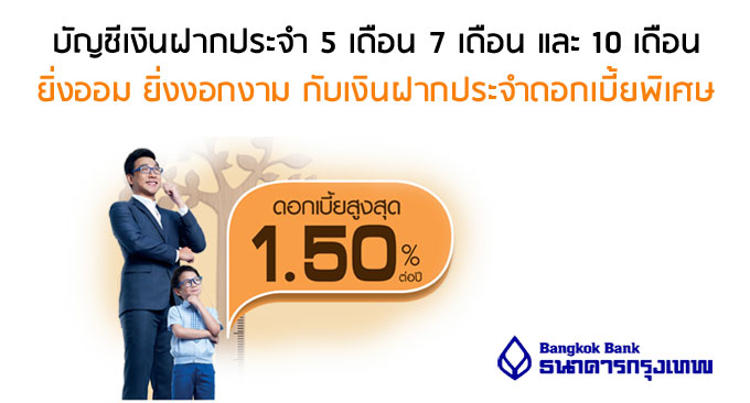 ธนาคารกรุงเทพมอบทางเลือกในการออมเงินด้วยบัญชีเงินฝากประจำ 5 เดือน 7 เดือน และ 10 เดือน รับฝากตั้งแต่วันนี้ ที่ธนาคารกรุงเทพทุกสาขา