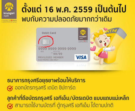 ธนาคารแห่งประเทศไทย ได้ประกาศให้มีการปรับเปลี่ยนบัตรเดบิตจากแถบแม่เหล็กเป็นชิปการ์ดตามมาตรฐานชิปการ์ดของไทย โดยตั้งแต่วันที่ 16 พฤษภาคม 2559 บัตรเดบิตที่ออกโดยธนาคารพาณิชย์ทุกแห่งในประเทศจะเป็นแบบชิปการ์ด ส่วนบัตรเดิมที่เป็นแบบแถบแม่เหล็กจะต้องทยอยเปลี่ยนเป็นบัตรแบบมาตรฐานชิปการ์ดของไทยภายในปี 2562