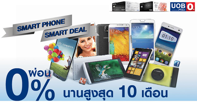 ผ่อน Smart Phone 0% นาน 10 เดือน พร้อมรับเครดิตเงินคืนสูงสุด 3,000 บาท จากบัตรเครดิตยูโอบี