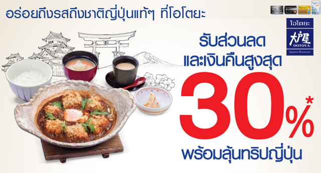 รับส่วนลดสูงสุด 30% พร้อมลุ้นทริปญี่ปุ่น ที่ร้านโอโตยะ เมื่อจ่ายผ่านบัตรเครดิตและบัตรเดบิต บีเฟิสต์