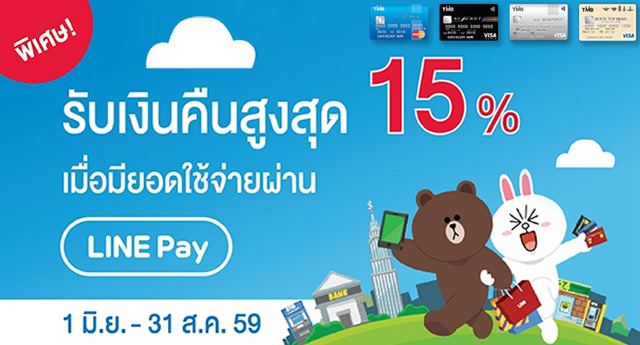 รับเงินคืนสูงสุด 15% เมื่อชำระค่าสินค้า/บริการผ่าน LINE Pay ด้วยบัตรเครดิต TMB