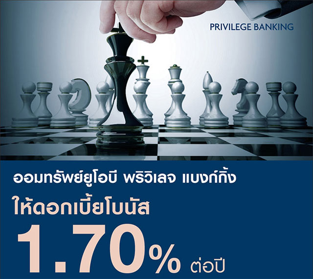 รับดอกเบี้ยโบนัส 1.70% ต่อปี เมื่อเปิดบัญชีออมทรัพย์ยูโอบี พริวิเลจ แบงก์กิ้ง