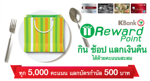 สิทธิพิเศษจากบัตรเครดิตกสิกรไทย ให้คุณ กิน ช้อป แลกเงินคืนได้ด้วยคะแนนสะสม KBank Reward Point โดยที่