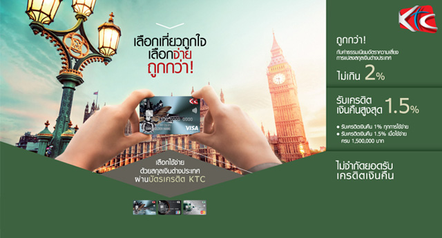 เลือกเที่ยวถูกใจ เลือกจ่ายถูกกว่า รับเครดิตเงินคืนสูงสุด 1.5% เมื่อใช้จ่ายที่ต่างประเทศ ด้วยบัตรฯ KTC