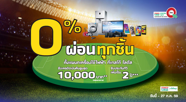 ผ่อน 0% ทุกชิ้น ทั้งแผนกเครื่องใช้ไฟฟ้าที่เทสโก้ โลตัส พร้อมรับเครดิตเงินคืนสูงสุด 10,000 บาท