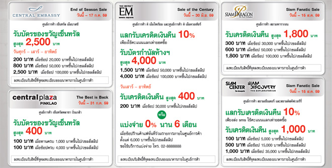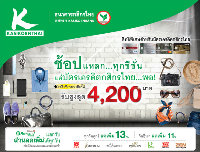 ช้อปแหลก.. ทุกซีซั่น รับเงินคืนสูงสุด 4,200 บาท ที่ห้างสรรพสินค้าชั้นนำ จากบัตรเครดิตกสิกรไทย