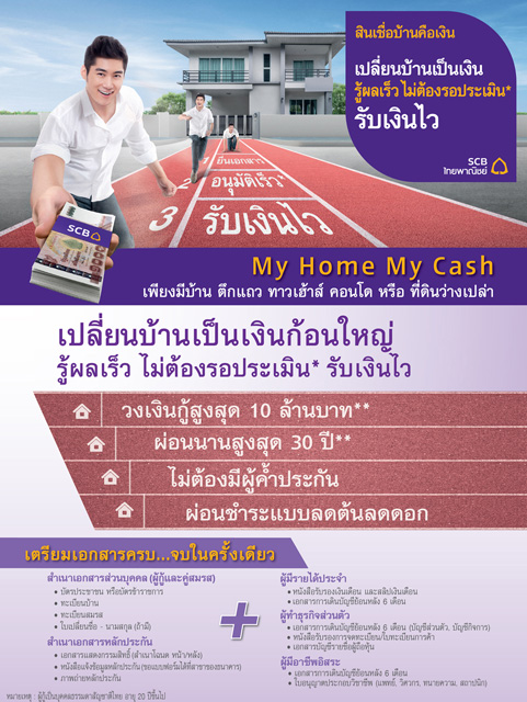 สินเชื่อบ้านคือเงิน My Home My Cash เปลี่ยนบ้านเป็นเงิน รู้ผลเร็ว รับเงินไว จาก ธ.ไทยพาณิชย์