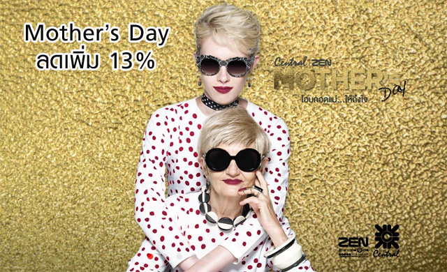 Mother's Day รับส่วนลดเพิ่ม 13% เมื่อแลกคะแนนสะสมเท่ากับยอดซื้อ และรับเครดิตเงินคืนสูงสุด 7% เมื่อช้อปที่ห้างเซ็นทรัลทุกสาขาและเซน ผ่าน