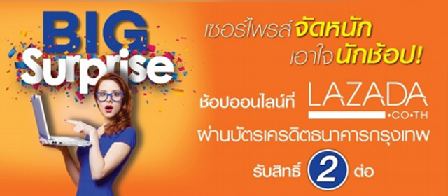 เซอร์ไพรส์จัดหนัก เอาใจนักช้อป! รับสิทธิพิเศษ 2 ต่อ เมื่อช้อปที่ LAZADA.CO.TH ผ่านบัตรฯ ธ.กรุงเทพ