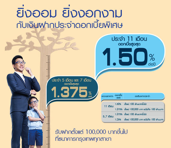 ยิ่งออม ยิ่งงอกงาม กับเงินฝากประจำ 11 เดือน ให้ดอกเบี้ยสูงสุด 1.50% จาก ธ.กรุงเทพ