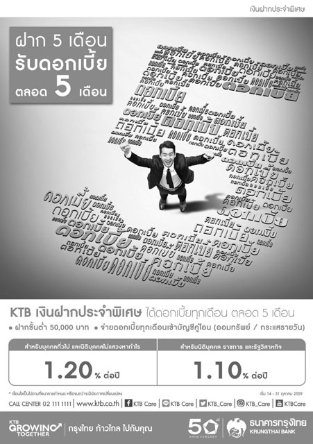 KTB เงินฝากประจำพิเศษ ระยะเวลาฝาก 5 เดือน จาก ธ. กรุงไทย ฝากสั้น...ได้ดอกเบี้ยทุกเดือน