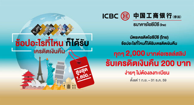 ช้อปอะไร ที่ไหน ก็ได้รับเงินคืนสูงสุด 1,600 บาท ง่ายๆ.. ไม่ต้องลงทะเบียน จากบัตรเครดิต ICBC (Thai)