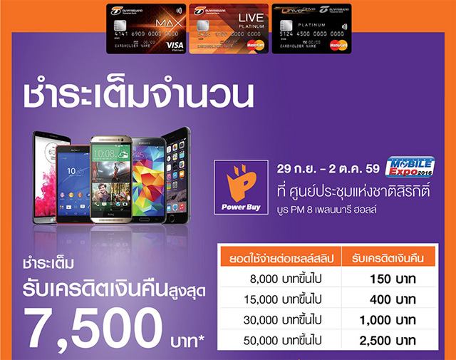 ชำระเต็ม รับเครดิตเงินคืน หรือผ่อน 0% ที่ร้าน Power Buy ในงาน Mobile Expo 2016 กับบัตรฯ ธนชาต