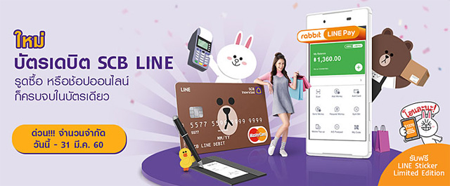 ใหม่! บัตรเดบิต SCB LINE รูดซื้อสินค้า หรือช้อปออนไลน์ ก็ครบจบในบัตรเดียว.. จาก ธ.ไทยพาณิชย์