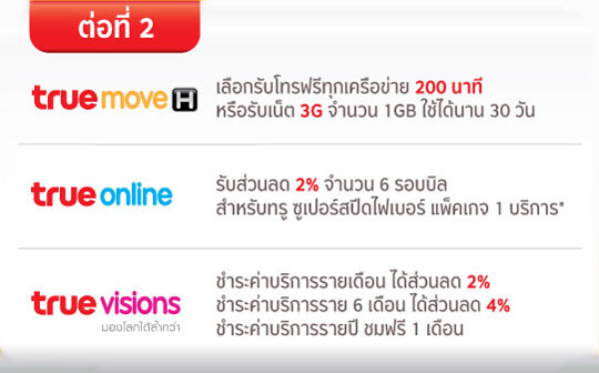 - ขอสงวนสิทธิ์ในการเปลี่ยนแปลงเงื่อนไขและสิทธิประโยชน์รวมทั้งของกำนัลอื่นที่มีมูลค่าใกล้เคียงกันทดแทนโดยไม่ต้องแจ้งให้ทราบล่วงหน้า เงื่อนไขการรับสิทธิจาก True