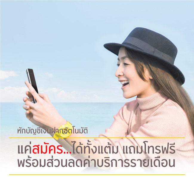 หักบัญชีเงินฝากอัตโนมัติ แค่สมัคร...ได้ทั้งแต้ม แถมโทรฟรี พร้อมส่วนลดค่าบริการรายเดือน