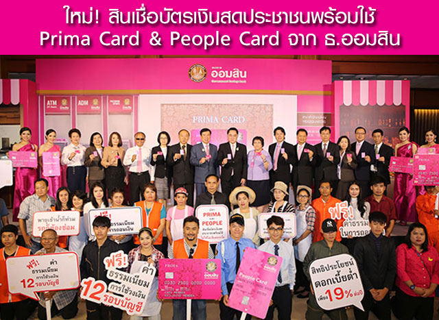 สินเชื่อบัตรเงินสดประชาชนพร้อมใช้ Prima Card และ People Card จากธนาคารออมสิน ทางเลือกใหม่ให้ประชาชนเข้าถึงสินเชื่อพร้อมใช้ได้ง่ายขึ้น พิเศษ! ฟรีค่าธรรมเนียม และรับอัตราดอกเบี้ย 19% ต่อปี เมื่อสมัครและได้รับอนุมัติภาย 31 ธันวาคม 2559